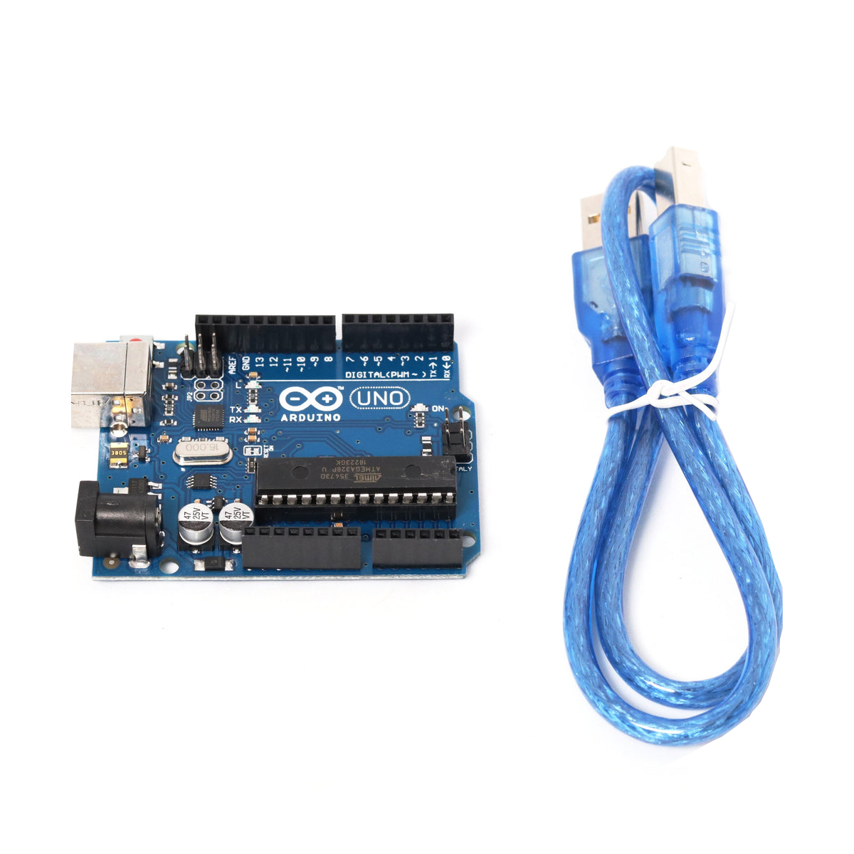 La carte Arduino Uno est basée sur un ATMega328 cadencé à 16 MHz. C’est la plus récente et la plus économique carte à microcontrôleur d’Arduino., Elle peut se programmer avec le logiciel Arduino, téléchargeable gratuitement sur le site : www.Arduino.cc Le contrôleur ATMega328 contient un bootloader qui permet de modifier le programme sans passer par un programmateur.