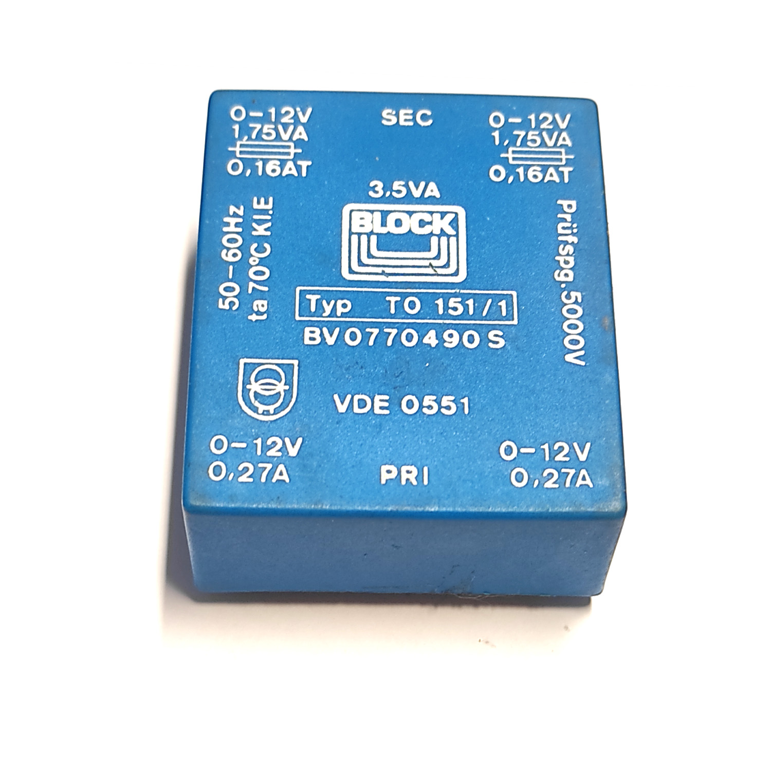 TRANSFORMATEUR SOUDABLE MOULE IN: 2X(0-12V /0,27A) OUT: 2X(0-12V /1,75VA /0,16AT)