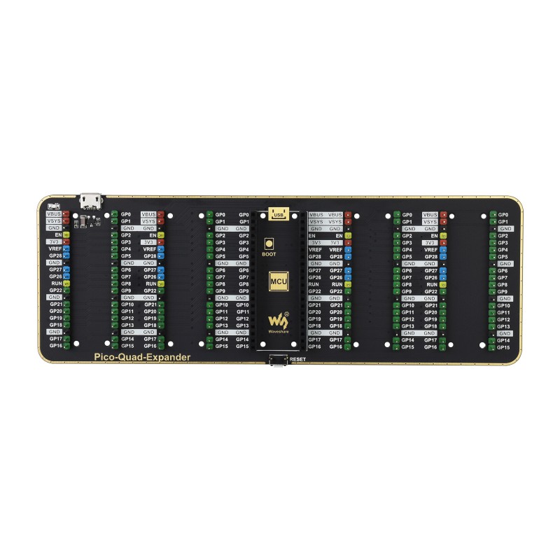 - Four sets of 2×20 male header, allows connecting more Raspberry Pi Pico expansion modules